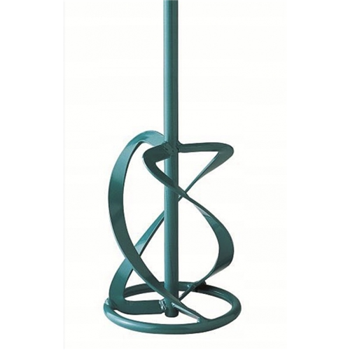Mieszadło MKN 140 M turkusowe, kształt uformowany w lewą stronę, do materiałów płynnych, zbrojonych włóknami i połączonych z gipsem jak tynki gipsowe, farby, powłoki, zaprawy z włóknami zbrojącymi itp.; Przebieg mieszania od góry do dołu COLLOMIX