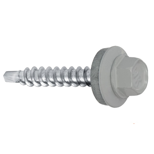 Wkręt farmerski samowiercący z podkładką EPDM do mocowania blach do podłoża drewnianego.