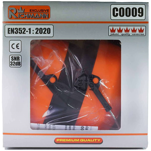 Nauszniki ochronne wygłuszające/przeciwhałasowe, przeznaczone do prac wykonywanych w środowiskach o dużym natężeniu hałasu. Poduszki uszczelniające wykonane z pianki poliuretanowej, regulowany pałąk z tworzywa sztucznego i metalu, który umożliwia dopasowanie do różnych rozmiarów głowy z dodatkową nakładką poprawiającą komfort użytkowania. Nauszniki spełniają normy EN352-1:2020. Produkt spełnia wymagania dyrektyw Unii Europejskiej (znak CE).