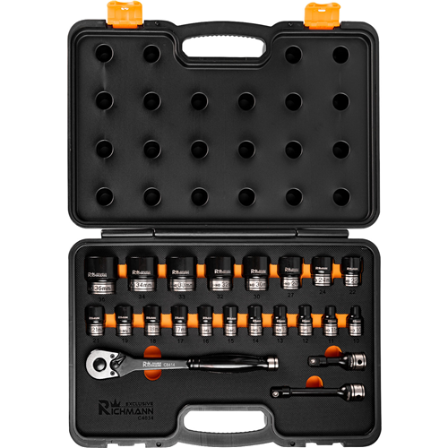 Zestaw 22 sztuk nasadek udarowych sześciokątnych z uchwytem ½”