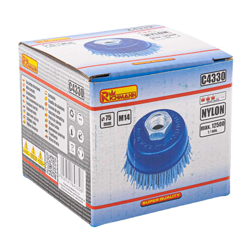 Szczotka doczołowa nylonowa o średnicy 75 mm do szlifierki kątowej z mocowaniem M14.