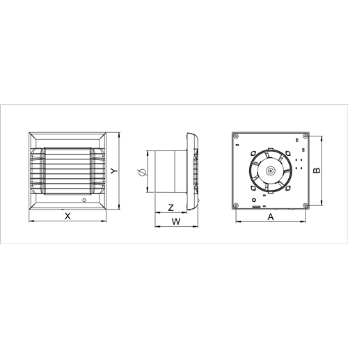 Wentylatory serii A-MATIC wyposażone są w automatyczną żaluzję, która otwiera się po uruchomieniu urządzenia. Wyłączenie wentylatora powoduje zamknięcie żaluzji co zapobiega niepożądanemu przedostawaniu się powietrza.
